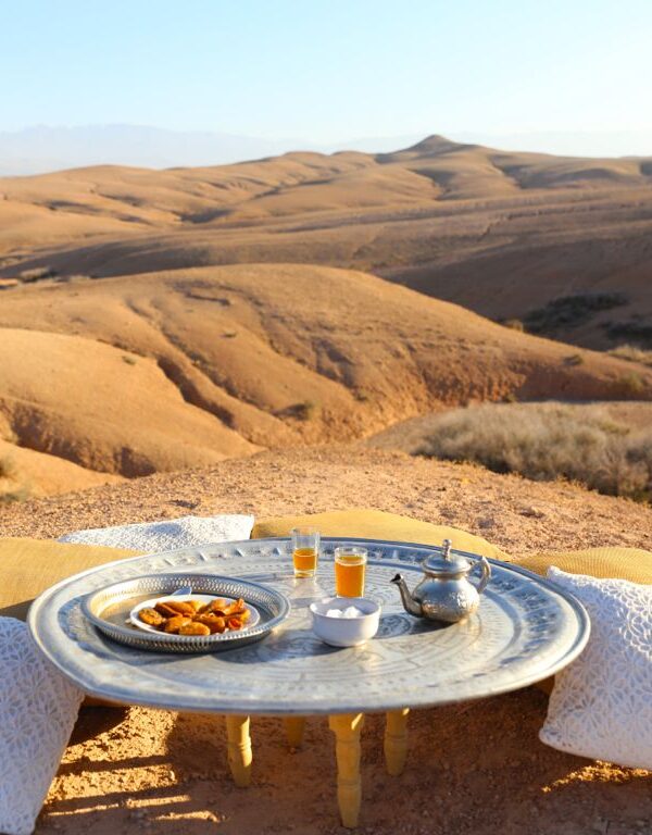 Escape the busy streets of Marrakech and step into the serene beauty of the Agafay Desert with an unforgettable evening of adventure and culture. Your experience begins with a hotel pickup, taking you just outside the city to a tranquil desert camp. Dressed in traditional nomadic attire, you’ll start with a scenic camel ride, gently swaying across the rocky dunes as you take in the vast, peaceful landscape. Next, feel the excitement build as you hop on a quad bike and ride along desert trails while the sun sets, casting warm golden tones over the horizon. As night falls, relax under a cozy Berber tent, where you’re welcomed with Moroccan hospitality and served a delicious traditional dinner. Enjoy the flavors of local cuisine while watching live music and dance performances beneath a sky full of stars. This Agafay experience is the perfect blend of adventure, culture, and relaxation—all in one magical evening.